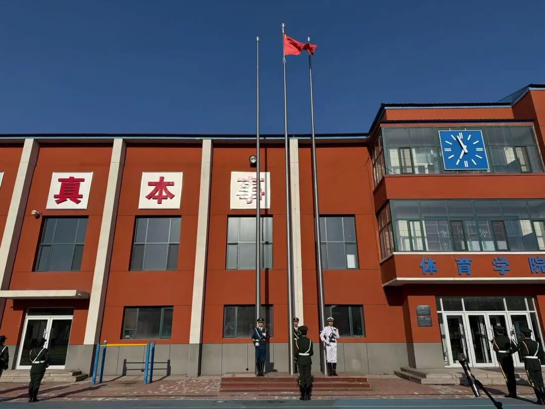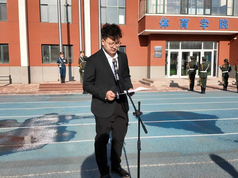 清晨7时,体育场上庄严肃穆。伴随着全体师生合唱《踏着铁人脚步走》,仪式拉开序幕,激昂的旋律激励着大家以铁人精神砥砺前行。国旗护卫队迈着整齐的步伐入场,在雄壮的国歌声中,五星红旗冉冉升起,全体师生肃立行注目礼,表达对祖国的崇高敬意。