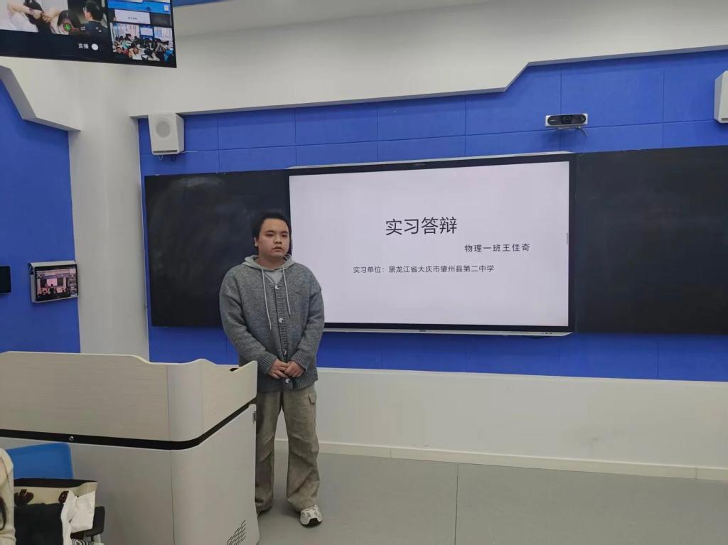 为检验学生实习成果,提升专业实践与综合应用能力,此次还进行了物理学教育实习答辩,同学们围绕师德体验、班主任管理、教学实践、教研实践等核心板块展开阐述:在教学工作中,分享了备课磨课、课堂授课、作业批改与学情反馈的完整流程,展示了自制的物理实验教具与精心设计的课堂互动方案;在班级管理方面,交流了协助班主任开展主题班会、处理学生日常问题的心得;在教研活动中,汇报了参与听课评课、集体备课的收获与思考;实习生恪守师德规范,以爱心耐心教育学生,以严谨态度传授物理知识,践行立德树人使命,在言传身教中感悟师者担当。评审组围绕教学设计的科学性、课堂把控的灵活性、学情分析的精准性等关键问题进行提问,实习生们从容应答,展现出扎实的专业知识与良好的教师素养。