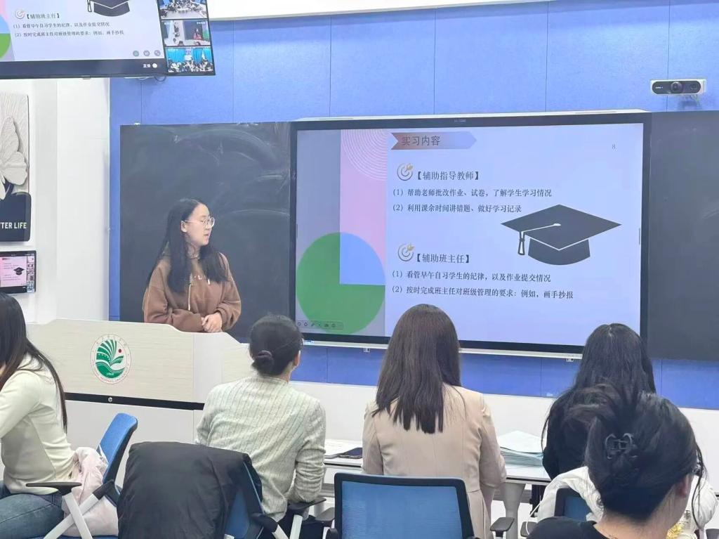 学生总结结束后,物理学专业负责人杨瑞老师进行点评与指导。充分肯定了同学们在实习中的显著进步:从“学生”到“准教师”“准班主任”的角色转变清晰可见,教学组织、课堂把控、班级管理等核心能力均得到有效提升。此外,她还针对实习材料的规范收集、考编备考的重点方向,给出具体指导意见。同时,各位实习指导老师特别强调,“与人相处的能力”是师范生未来职业发展的重要支撑,需在实践中持续锤炼,希望同学们能尽快成为合格的中学物理教师。