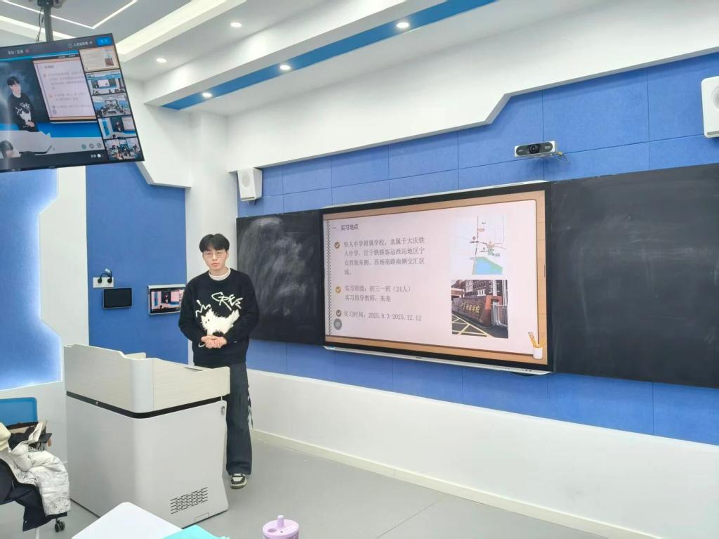 随后,大庆景园中学实习队曾雪强、大庆第三十六中学实习队单天宇、大庆市铁人附属学校实习队韩淼、大庆市嘉城学校实习队张志强、大庆市第三中学实习队何芋、5所校外混编实习队代表刘泉岐、六位实习队长代表所在实习队依次上台总结,结合同学们实习经历分享感悟,内容紧扣“教学实操”“班级管理”“自我成长”三大核心维度,以“备课—磨课—授课”全流程为切入点,详细介绍如何通过设计层层递进的问题链,引导学生深化知识理解;聚焦班主任工作,分享与学生沟通、与家长协作的实用技巧;反思实习中存在的不足,明确后续需重点提升的教学技能。真实的案例与真挚的感悟,引发台下同学的强烈共鸣,现场交流氛围浓厚。